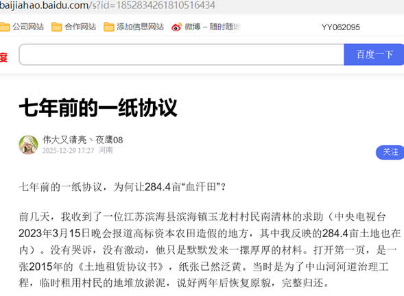 七年前的一纸协议,为何让284.4亩“血汗田”? 前几天,我收到了一位江苏滨海县滨海镇玉龙村村民南清林的求助(中央电视台2023年3月15日晚会报道高标资本农田造假的地方,其中我反映的284.4亩土地也在内)。没有哭诉,没有激动,他只是默默发来一摞厚厚的材料。打开第一页,是一张2015年的《土地租赁协议书》,纸张已然泛黄。当时是为了中山河河道治理工程,临时租用村民的地堆放淤泥,说好两年后恢复原貌,完整归还。 租金清楚,条款明白,还盖着红章。任谁看,这都是份规规矩矩的文书。 可谁能想到,这张看似充满善意的协议,竟然成了284.4亩基本农田“死亡”的开端。七年过去了,地没回来,等来的,是一个深达近40厘米、再也长不出好庄稼的一般农田。 一、权力的“魔术”:27万清运权,如何暗中变卖成百万生意? 据当事人叙述: 故事的第一个诡异转折,出现在该清淤复垦的2017年。 根据材料,当时镇政F与一位项目负责人徐正签了合同,用27万元的价格,让他负责把淤泥清走、把土地整平。合同里白纸黑字强调了一点:不得转让给第三方。 规矩,是立给守规矩的人看的。村民们指认,很快,另一个在当地颇有“能量”、据说有过盗土“前科”的人物陶月权,成了这片土地的实际操纵者。而“接手”这份清运权力的价码,传闻飙到了100万元。 一份严肃的行政协议,一次本该被严格监督的国土恢复工程,其核心权力竟像商品一样被暗中转手、层层加价。本应守护土地的承诺,在利益面前,成了一张可以随意交易的废纸。 二、触目惊心的“刮地皮”:7万方“熟土”不翼而飞 如果说权力转包是噩梦的序曲,那接下来发生的,就是一场对土地的“凌迟”。 协议里写得明明白白:清走淤泥后,必须把当初堆在四周的宝贵“熟土”(那是耕地的精华,庄稼的命根子)推回田里,保证厚度。这是常识,更是底线! 但现实呢?根据老南提供的、由镇政F自己委托第三方出具的测绘报告,结果让人脊背发凉: 整片284.4亩的土地,平均比周围正常农田低了38.5厘米! 算一算,足足缺失了7万多立方米的土方!那层养了祖祖辈辈的黑土、肥土去哪了?村民们痛哭控诉:被陶月权等人用卡车拉走,卖掉了! 留给乡亲们的,不再是可以传承的沃土,而是一个巨大的、无法耕种的泥潭。2021年,这片祖产,彻底抛荒。 三、维权碰上的“橡皮墙”:是“施工违约”,还是“毁田盗卖”? 地没了,农民的天,塌了。老南们开始上访、举报, 讨一个说法。 然而,他们仿佛撞上了一堵无形的“橡皮墙”。材料显示,镇政F的初步回应,试图将这场性质恶劣的 “盗卖耕作层、毁灭基本农田” 的行为,轻描淡写地定性为施工方的“超采”和“违约”。 2021年7月,镇政F称已将线索移交并委托司法鉴定。但日子一天天过去,鉴定结果如同石沉大海。 更匪夷所思的操作来了。同年11月,在土地远未恢复、许多村民拒绝签字的情况下,这片“荒滩”被镇村组织强行流转给了县里农旅集团,种上了小麦。 这用意,村民们看得清楚:“想用长出来的青苗,掩盖地下被掏空的现实,造成既成事实!” 有坚持维权的村民代表,被各路“有头有脸”的人士劝说、甚至许以好处,希望他们“别再闹了”。这一切,让老南们不得不怀疑:毁田者的背后,是否有一把急于“灭火”的大伞? 四、平行时空般的“答复”:不高产长粮食的田地,就是最好的证据 事情的高潮,是一份2022年底的官方答复。答复称:土地已平整,高度与周边一致,符合种植条件,并由农业公司种植,“故不存在破坏良田的情况”。 看到这里,我哭笑不得。老南指着材料,问我几个简单到无法回答的问题: 1. 如果没破坏,当初施工方缴纳的20万元复垦保证金,为何至今不退? 2. 如果已恢复,为什么2022年村集体自己种的那季小麦,亩产只有两三百斤,秋天更是几乎绝收? 3. 那份白纸黑字、显示土地低洼38.5厘米的 官方测绘报告,难道是自己长了脚,跑出了平行时空。 答复与事实,仿佛在讲述两个完全不同的世界。但土地不会撒谎,长不出的麦穗,就是最沉默、也最震耳欲聋的控诉。 还有一份(停诉息访承诺书)朱祝余,我本人及家人,王子友等人不再为玉龙村任何事情通过走访,信访,网上投诉,拨打12345等任何方式向任何部门反映(含纪委,信访,公安,法院,自然资源与规划等),不得指使南清林通过任何形式到任何部门反映任何事情。同时做好保密工作,对我们信访事项处理结果不向任何人透露,否则我将承担一切法律后果,相关部门停发我民情监督员交通补助费,并自愿退回之前所领取的一费用。 五、沉重的追问:284.4亩良田之殇,到底是谁的“责任”? 这不是简单的纠纷,这是一出环环相扣、令人窒息的“连续剧”: 违规转包,让监督形同虚设;盗卖国土,把农民命根子当成商品;毁灭耕地,触及国家红线;敷衍调查,消耗政F公信;强行流转,企图掩盖真相…… 284.4亩基本农田,相当于近27个标准足球场。38.5厘米的坑,能淹没一个成年人的膝盖。7万方熟土,是多少代农民心血所系?它本该孕育出百万斤粮食,如今却不知躺在哪个楼盘的地基之下。 “耕地红线”是国策,是写在文件里的重中之重。但当基层的守护者,可能成为破坏的掩饰者时,我们该如何相信“饭碗牢牢端在自己手中”的承诺? 老南的诉求,朴素而正当:依法彻查,追究毁田盗土者的刑责,赔偿农民损失,处理失职人员。 这张2015年的协议,签下的是一份沉甸甸的信任。七年过去,信任被