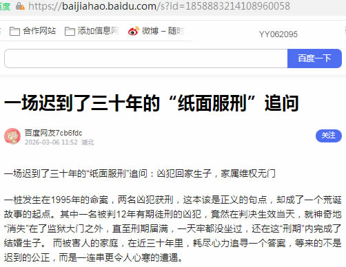 一场迟到了三十年的“纸面服刑”追问:凶犯回家生子,家属维权无门